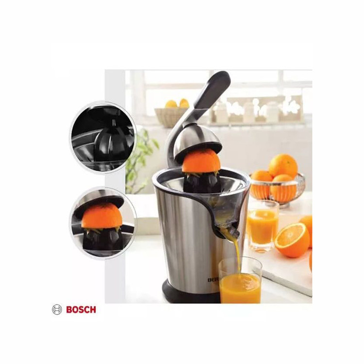 برند بوش برای این محصول صافی مخصوصی از جنس استیل ضد زنگ طراحی کرده که تفاله ی میوه ها را میگیرد. در ضمن دارای اهرمی فولادی بوده که به راحتی قابل شست و شو است.